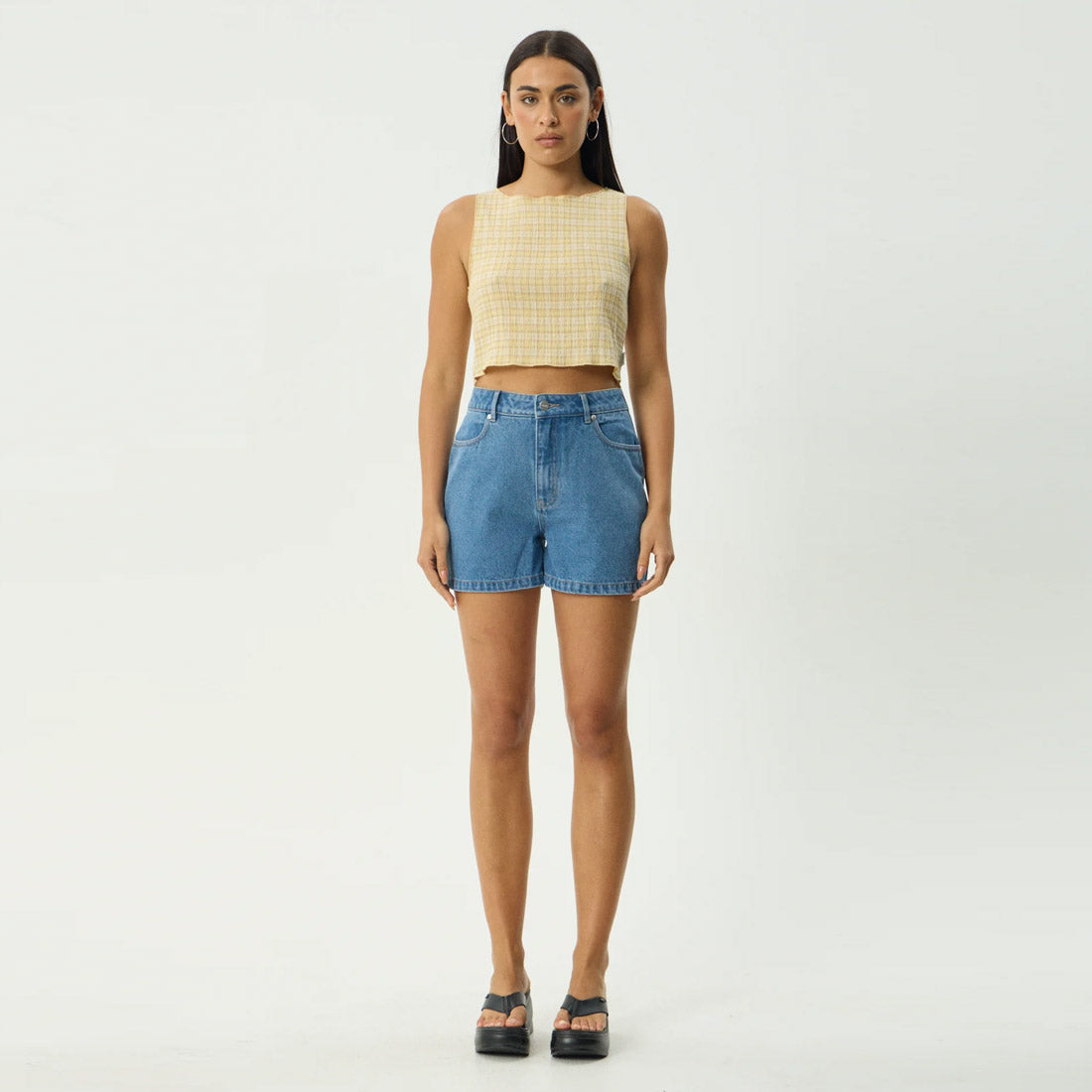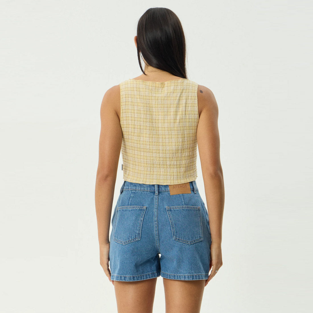 Our newest Lemon Check comes to life in a range of fresh silhouettes, crafted from our signature seersucker blend. Lightweight, textured, and effortlessly breathable, each piece pairs the playful charm of Lemon Check. Designed with a wide boatneck, sleeveless cut, and cropped silhouette, it’s finished with delicate baby lock edges for a clean, effortless look.