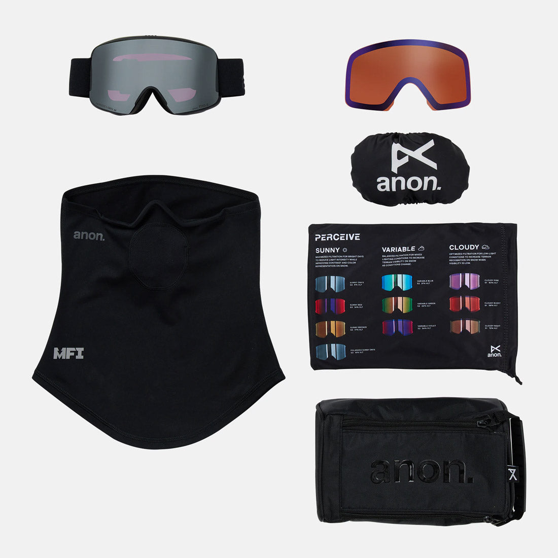 The Anon M6 Low Bridge Fit Goggles offer a precise helmet-to-goggle fit with the wide field of view and low-profile design of a cylindrical lens. Our innovative Magna-Tech® quick lens-change technology uses powerful rare earth N52 magnets to make lens changes easier than ever. Perceive optics offer high-contrast, terrain-defining clarity. They feature our best anti-fog treatment for crystal-clear vision in a wide range of conditions. Full-perimeter venting plus moisture-wicking, ramped face foam creates a comfortable, form-fitting seal that supports fog-free clarity to anticipate every turn. Magnetic Face Mask Integration (MFI®) provides seamless face mask attachment. Includes a bonus Perceive lens so you're prepared for all conditions, plus an MFI face mask, microfiber goggle bag, and lens compression case.