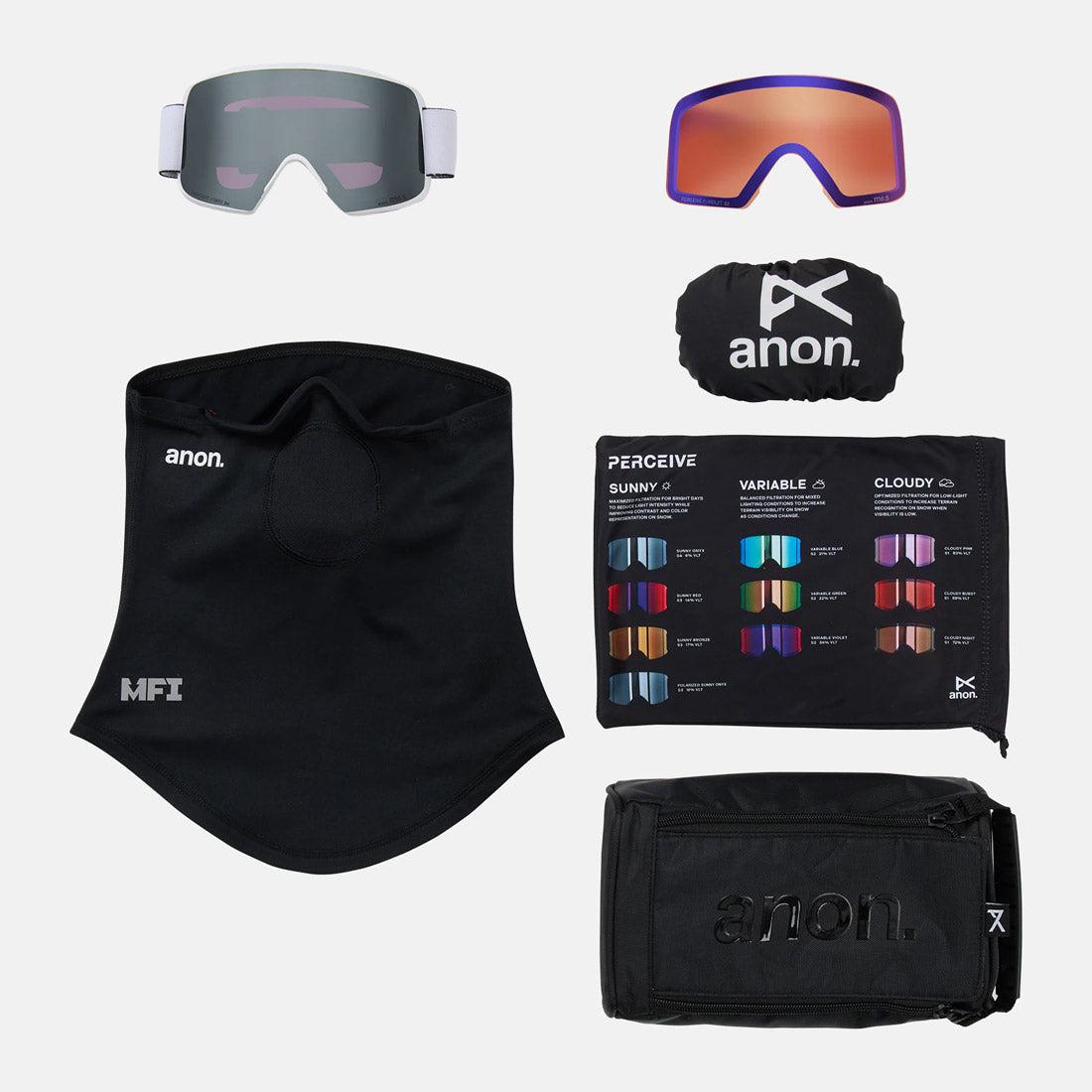 The Anon M6S Low Bridge Goggles feature the same high-end performance as the M6 Goggles in a frame scaled for medium and small faces. They offer a precise helmet-to-goggle fit with the wide field of view and low-profile design of a cylindrical lens. Our innovative Magna-Tech® quick lens-change technology uses powerful rare earth N52 magnets to make lens changes easier than ever. Perceive optics offer high-contrast, terrain-defining clarity. They feature our best anti-fog treatment for crystal-clear vision in a wide range of conditions. Full-perimeter venting plus moisture-wicking, ramped face foam creates a comfortable, form-fitting seal that supports fog-free clarity to anticipate every turn. Magnetic Face Mask Integration (MFI®) provides seamless face mask attachment. Includes a bonus Perceive lens so you're prepared for all conditions, plus an MFI face mask, microfiber goggle bag, and lens compression case.