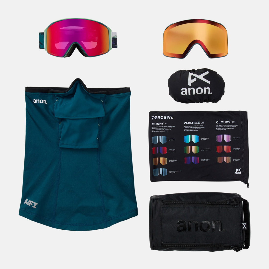 The Anon M4S Cylindrical Goggles feature the same high-end performance as the M4 Goggles in a frame scaled for medium-sized faces. They offer a precise helmet-to-goggle fit with the wide field of view and low-profile design of a cylindrical lens. Our innovative Magna-Tech® quick lens-change technology uses powerful rare earth N52 magnets to make lens changes easier than ever. The M4S offers the unprecedented versatility to switch between toric and cylindrical style lenses. This edition of the M4S includes two cylindrical lenses featuring Perceive optics for high-contrast, terrain-defining clarity and our best anti-fog treatment for crystal clear vision through a wide range of conditions. Magnetic Face Mask Integration (MFI®) provides seamless face mask attachment, and full-perimeter vents maintain consistent airflow for fog-free clarity. Includes a paneled MFI face mask, a Magna-Tech goggles storage case, and an elastic lens protector.