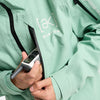 Small Details Make a Big Difference Stuff like mesh-lined pit zips, underarm gussets for full mobility, an adjustable hood, and water-resistant zippers make for smooth days at the resort and in the backcountry.