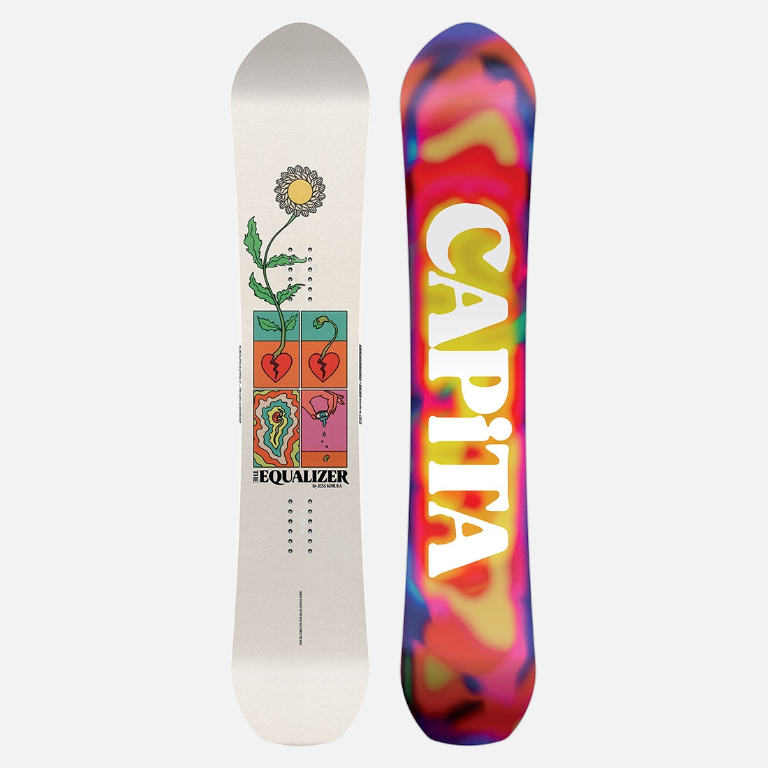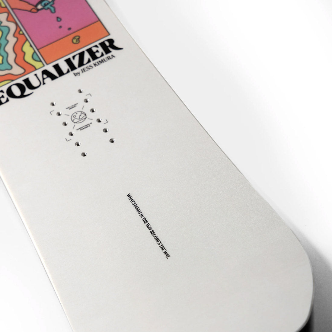 The Equalizer's ride and response comes from its META CoreTM to achieve a desirable flex for all-mountain terrain, while TechnoraTM + Flax Boosters provides longitudinal power. Featuring a Quan- tum DriveTM high-speed sintered base, The Equalizer is one of the most technically advanced women's freeride boards on the market.
