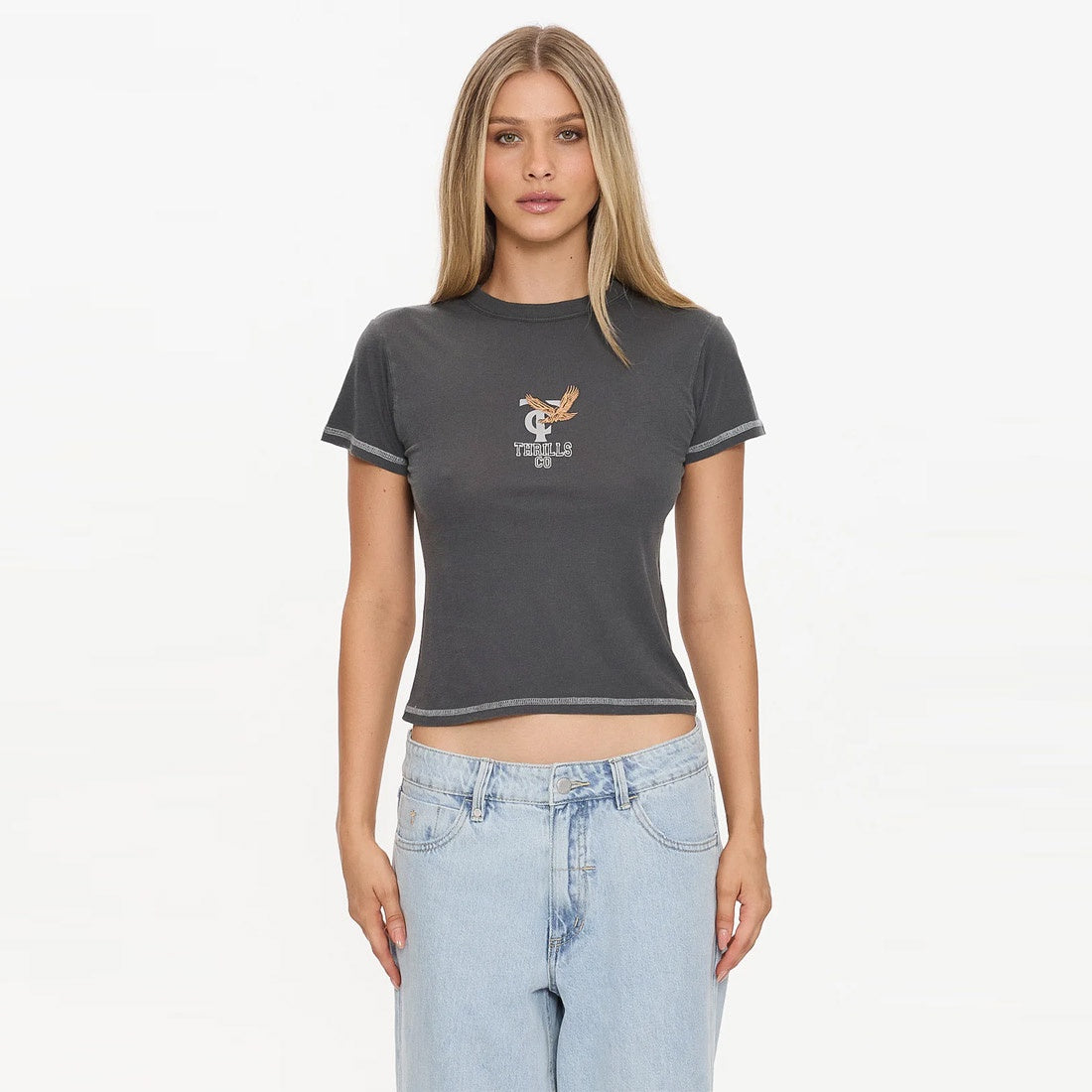 The Take It Easy Boy Tee in Merch Black has your downtime covered. Cut from lightweight organic cotton jersey, it is a perfect blend of soft, breathable, and all-day comfort. The boy fit leans slim and flattering with a cropped edge, while the chest graphic keeps things playful without trying too hard. A Thrills staple that pairs effortlessly with denim, skirts, or layered under a button-down, it's as versatile as it is easy-going.