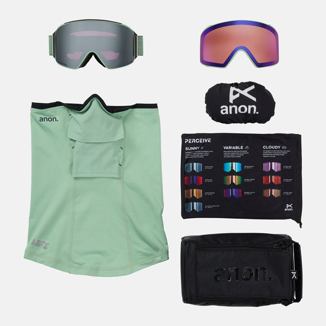 The Anon M4 Cylindrical Goggles offer a precise helmet-to-goggle fit with the wide field of view and low-profile design of a cylindrical lens. Our innovative Magna-Tech® quick lens-change technology uses powerful rare earth N52 magnets to make lens changes easier than ever. The M4 offers the unprecedented versatility to switch between toric and cylindrical style lenses. This edition of the M4 includes two cylindrical lenses featuring Perceive optics for high-contrast, terrain-defining clarity and our best anti-fog treatment for crystal clear vision through a wide range of conditions. Magnetic Face Mask Integration (MFI®) provides seamless face mask attachment, and full-perimeter vents maintain consistent airflow for fog-free clarity. Includes a paneled MFI face mask, a Magna-Tech goggles storage case, and an elastic lens protector.